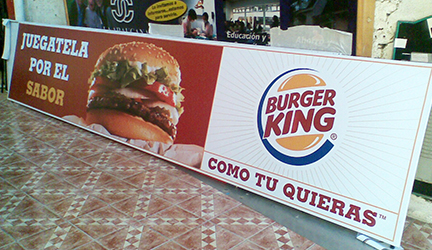 Tela PVC con GRAFICA IMPRESA EN ALTA RESOLUCION y tintas fabricadas especialmente para la alta durabilidad a la intemperie, posee protección contra RAYOS UV. La tela es tensada y remachada por la parte posterior del marco para dar una terminación “limpia”.